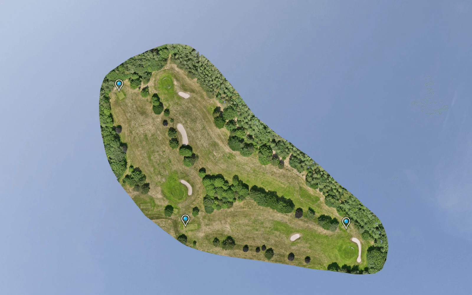 Digitaler Zwilling eines Golfplatzes: Orthofoto-Karte und 360°-Panoramen aus der Luft und am Boden für Training, Marketing und Betriebsplanung.